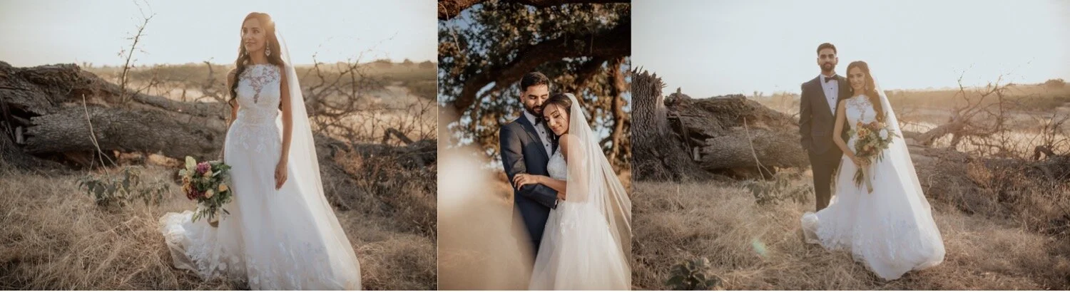 A sunset engagement shoot on a back road farm in Madera California. Navreen really wanted to have the white dress, suite, traditional American wedding….so her boy gave it to her and compromised during their engagement shoot!!! She found her dress, ordered her veil off Amazon….who would have know it was beautiful!!! She also wanted to photographs to be taken on her fathers ranch. He spent the morning clearing out spaces for the shoot and was so excited to show her with a big ole smile on his face. One of his fave spots on the ranch was this giant rock formation so I made sure to snap some portraits of Navreen and Ravinder in front of it so he had them to cherish. These two were all smiles and fun during their session and were pretty much down for anything I directed them to do. Ravinder was a bit nervous but five minutes to their session we were having a good time. We were racing against the sunset for outfit number two but these turned out to be some of my favorite images. They were playful, fun and lots of forehead kisses to end the session.